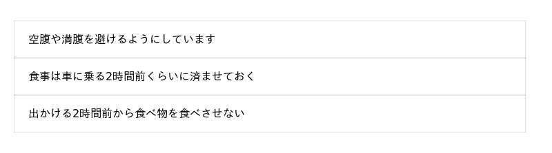 など、乗車前の食事タイミングを意識している回答が多く見られました。