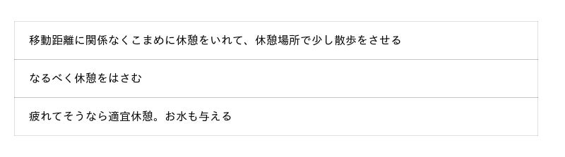 といった声があり、移動中に愛犬の様子を見ながら休憩を挟んでいる飼い主が多いことがうかがえます。