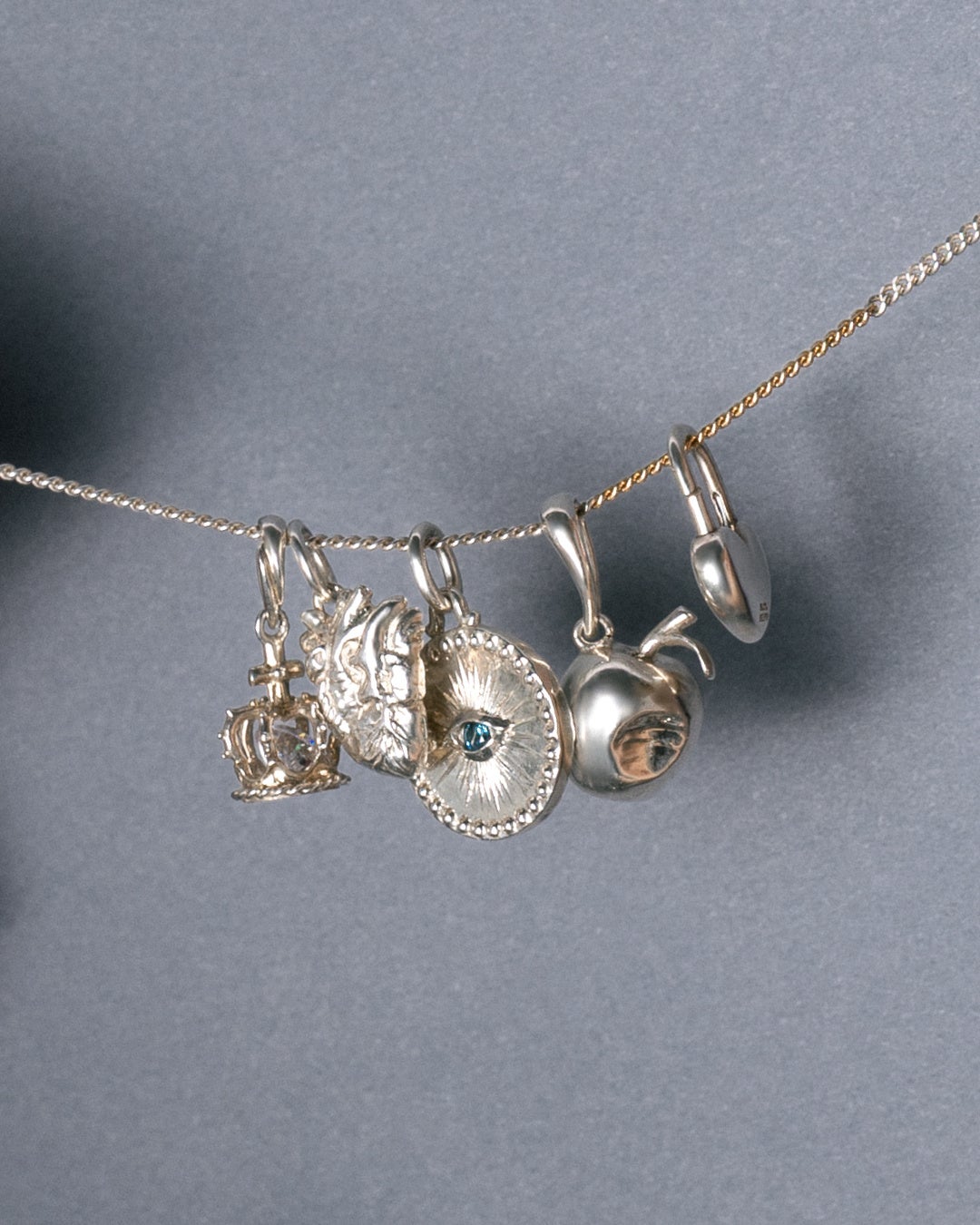 2月1日(日)~2月12日(木)の会期では、1月会期で発売したものも含め10種類のラインナップ。魔除けのおまもりとしても知られる"Evil eye"にブルーのキュービックジルコニアをセッティングしたチャームや、心臓をかたどったチャームなどエッジィなモチーフも登場。