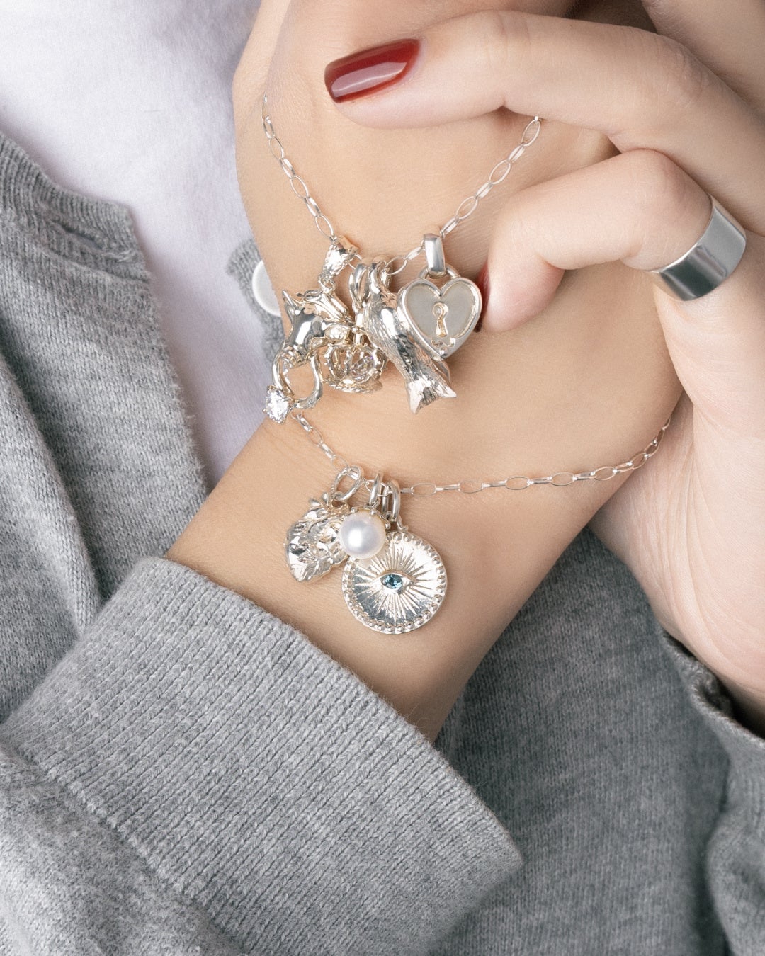 クラウンやハート、クロスやスカルなど多彩なモチーフのシルバーチャームをe.m. zozotownにて期間限定で受注販売。お気に入りのラッキーモチーフを選んで、自分だけのおまもりジュエリーに。