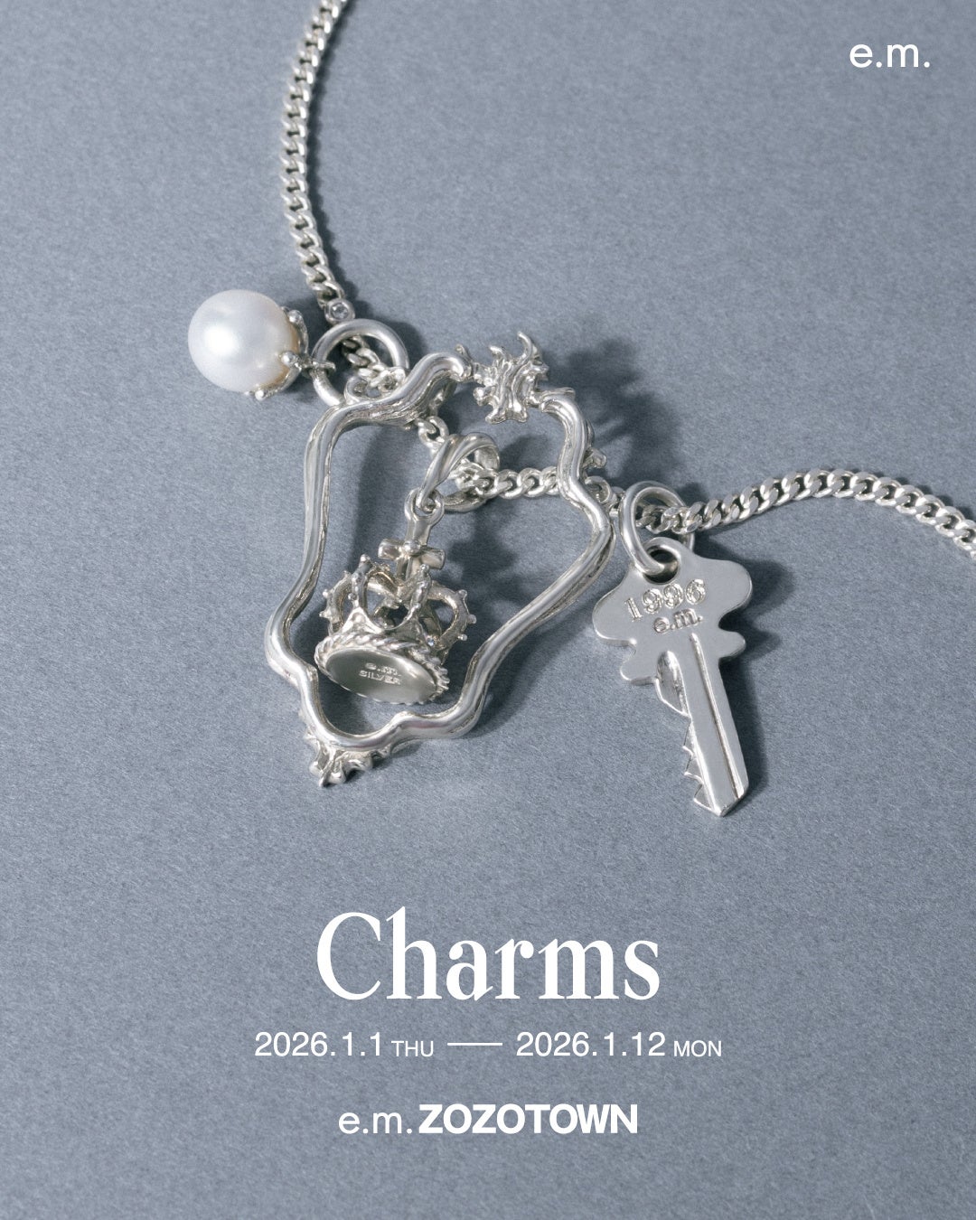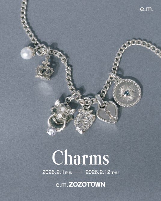 ジュエリーブランド【e.m.】を運営するイー・エム・デザイン株式会社は、2026年1月1日(木)~1月12日(月) / 2026年2月1日(日)~2月12日(木)の期間中、限定イベント「Charms」をe.m. zozotown にて開催します。
