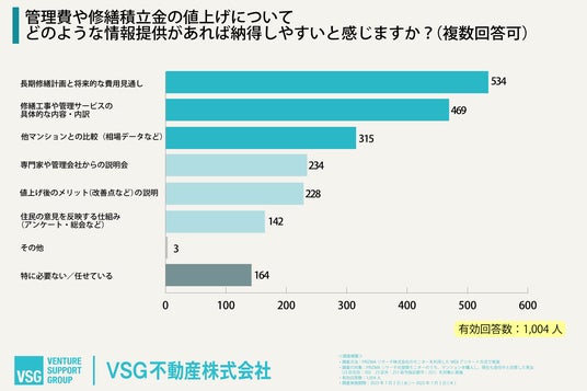 「管理費や修繕積立金の値上げについて、どのような情報提供があれば納得しやすいと感じますか?(複数回答可)」という質問に対して、以下の回答が得られた。