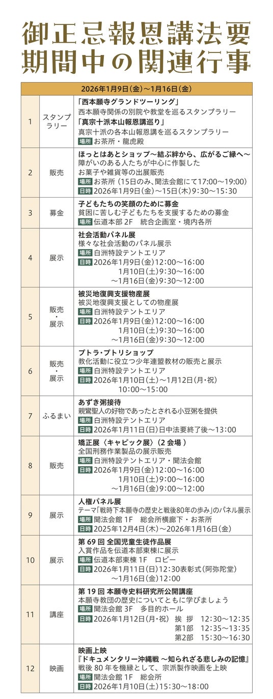 ■本願寺公式HP「お西さん(西本願寺)」:https://www.hongwanji.kyoto/※「2026(令和8)年 御正忌報恩講法要のご案内」の詳細はこちら: