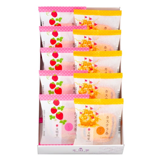 商品内容:カステラ巻ハニー/カステラ巻いちご 各5個