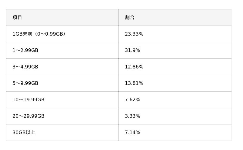 - データ使用量は少~中容量が中心、日常利用には十分という声