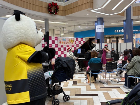 サカイ引越センターは堺市と「子育てのまち堺」の情報発信について協定を締結しており、昨年に引き続き、フェスタのなかで「100万人のクラシックライブ」を開催致しました。望月 茉莉奈さん(ヴァイオリン)、山之内 里衣さん(ピアノ)に、子どもたちに楽しんでもらえる楽曲を演奏していただき、音楽を通じて堺市の子育て支援のお手伝いをする事ができました。会場では、まごころパンダくんが、集まった子どもたちとの記念撮影を行いました。