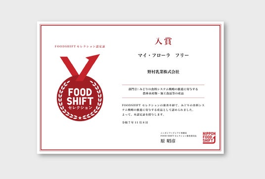 「おなかを育てる」腸活専門メーカーの野村乳業株式会社(本社:広島県安芸郡府中町、代表取締役:野村和弘)が販売する、低FODMAP乳酸菌飲料「マイ・フローラ フリー」が、農林水産省が推進するニッポンフードシフト表彰事業「FOOD SHIFT セレクション(※)」で入賞しました。