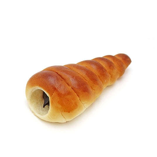 巻貝の形をした昔ながらの手作りパン。中にチョコレートクリームを入れました。