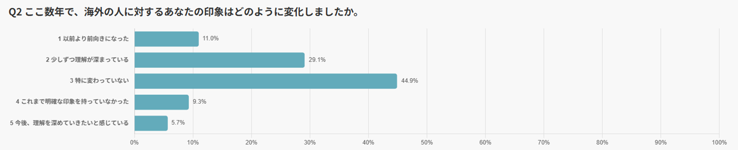 この結果から、海外の人への印象は、一気に変わるというよりも、時間をかけて緩やかに形成・更新されている様子がうかがえます。