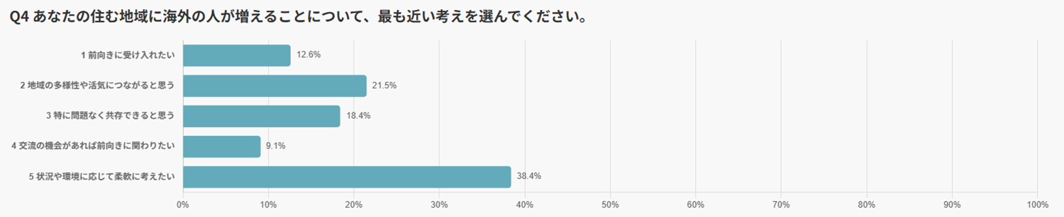 これらの結果から、地域レベルでの受け止め方は、「歓迎か拒否か」ではなく、「状況を見ながら判断する」意識が中心であることが分かります。