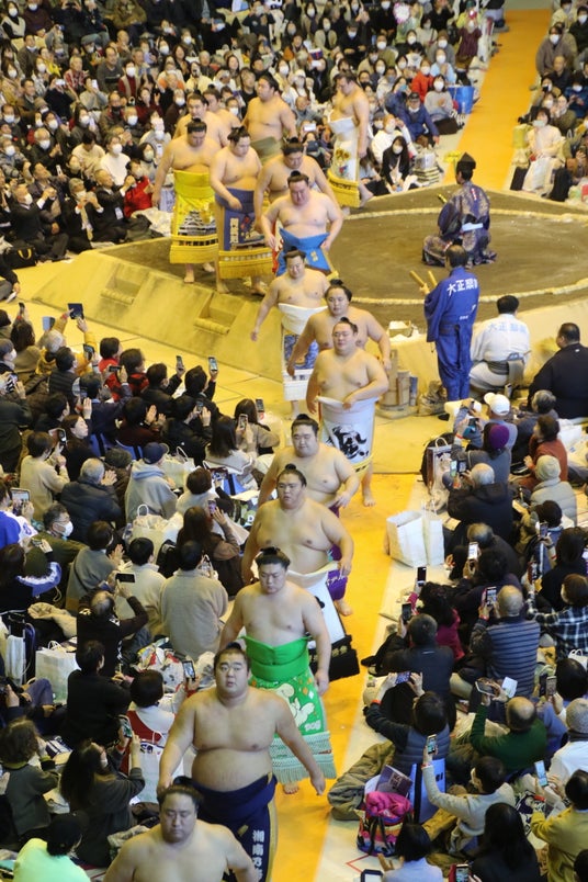 力士たちが七五調のリズムや独特の掛け声と共にユーモアを交えながら歌を披露しました。