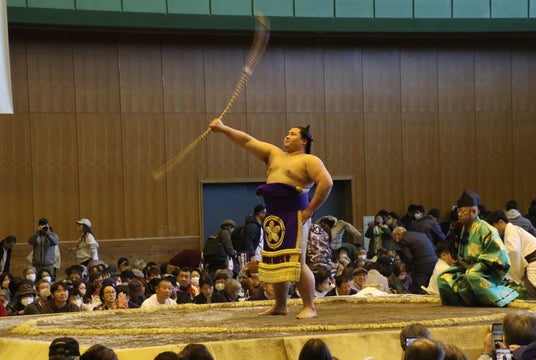 第74代横綱 豊昇龍関が土俵入りで締める綱を、網打ちと呼ばれる伝統的な儀式で力士たちが作り上げました。