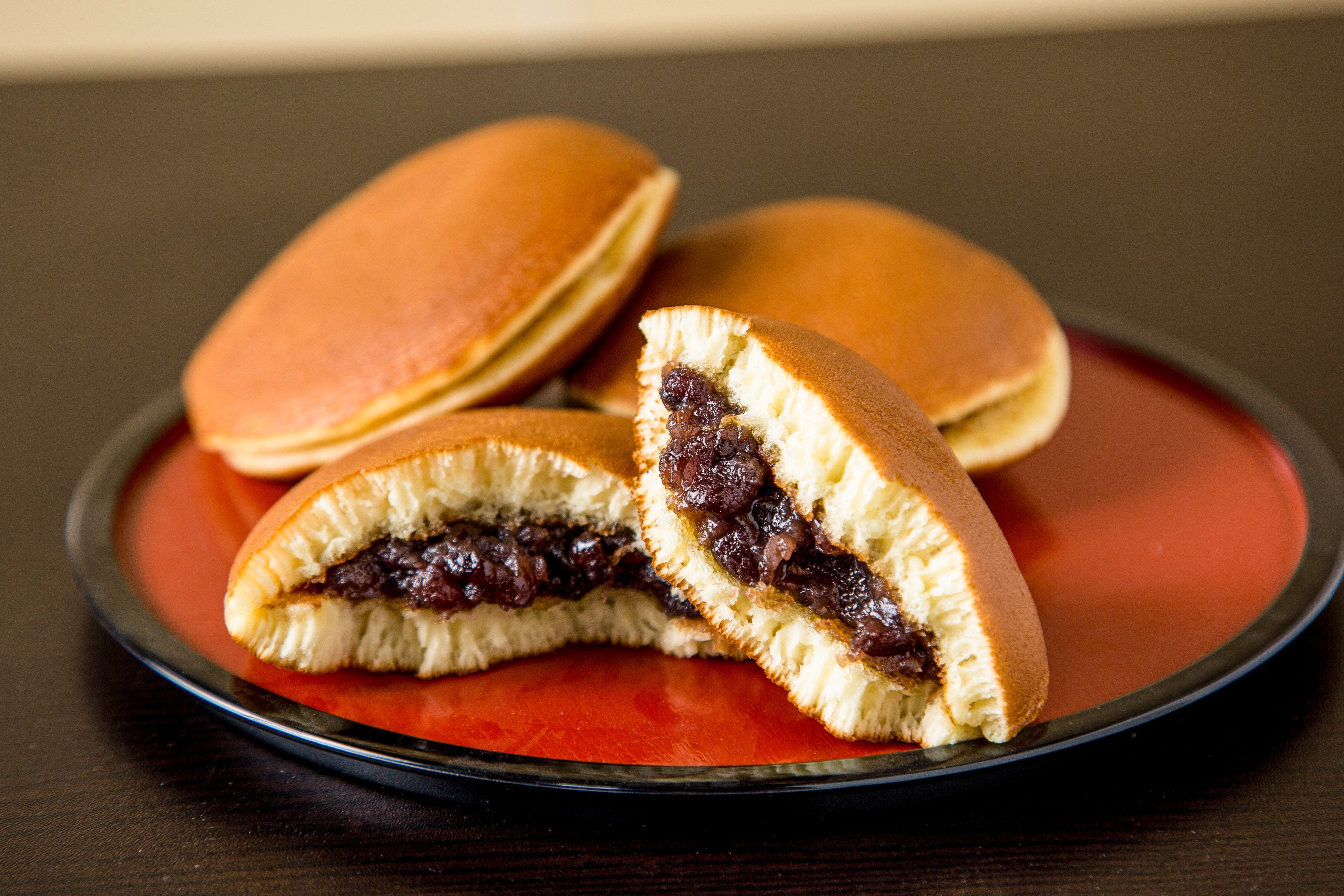 北海道道南地方のあかね大納言小豆を三日間かけて仕上げた粒あんを使い、⽪は宵ごねで生地を仕込み、一枚一枚蒸し焼きにしました。職人さんによる実演で、出来立てのどら焼きをご賞味いただけます。