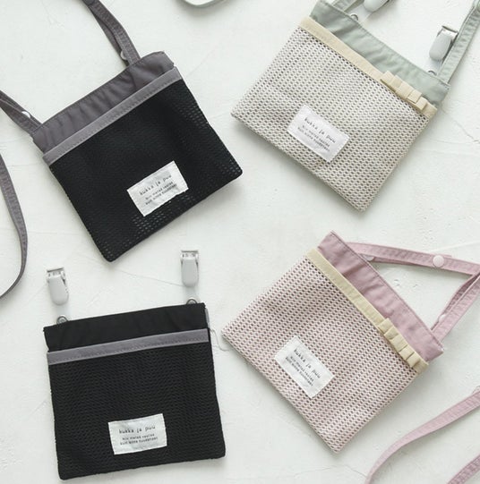 仲間入りしたのは表がメッシュ素材になった新デザイン。通気性が良いので濡れたハンカチを入れても蒸れにくく、また、マチをなくしてスリムな形にしたこともポイントです。