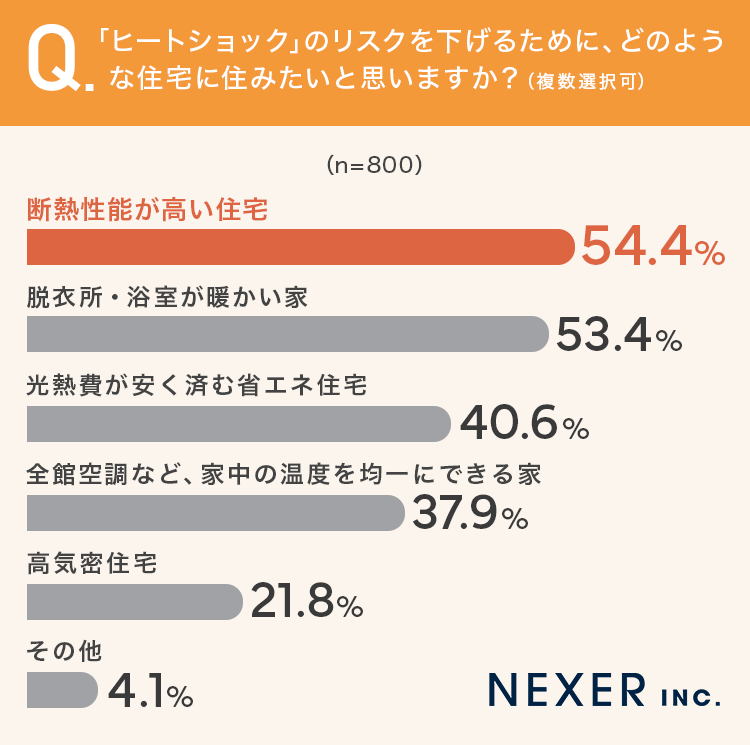 続いて、「ヒートショック」のリスクを下げるために、どのような住宅に住みたいと思うかを聞いてみました。