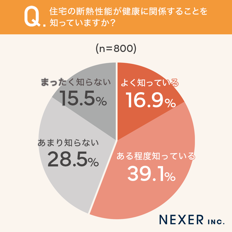 一方で4割以上は十分に認識しておらず、断熱性能が健康面にも影響するという理解はまだ広がり切っていないことが分かります。