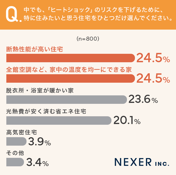 中でも、「ヒートショック」のリスクを下げるために、特に住みたいと思う住宅をひとつだけ選んでもらいました。