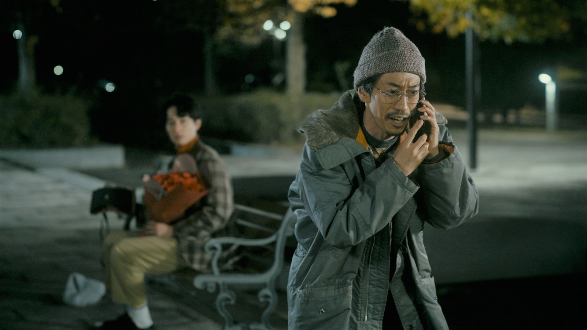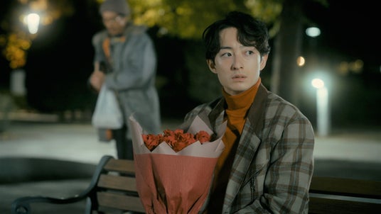 大きめの花束を持った田代(濱正悟)がベンチに座って誰かを待っている。そこに現れた成田(夙川アトム)は訝しげに田代を見ながら同じベンチに座り、たこ焼きを食べ始める―。