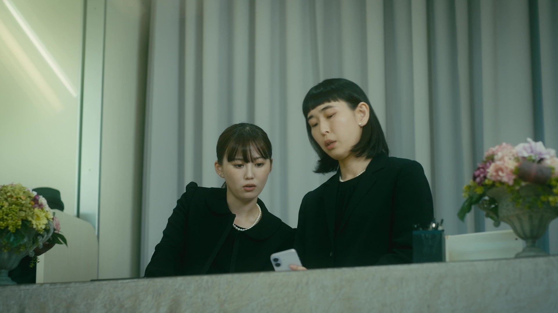 葬儀場の受付を淡々とこなす2人。鳩子(三原羽衣)は、遠い親戚である美穂(佐々木史帆)に“チャーハンを最後まで食べきれない”という雑談を持ち掛けて―。
