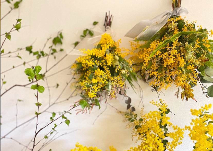 春色の花材でスワッグを作りましょう。(※写真はイメージです。花材は仕入れによります。)