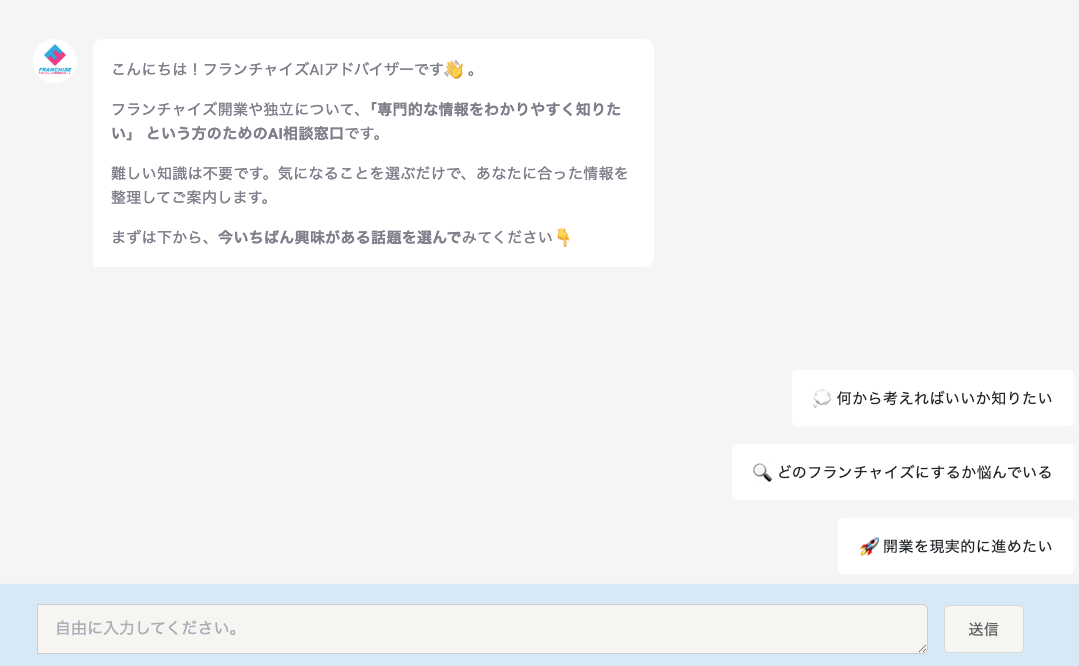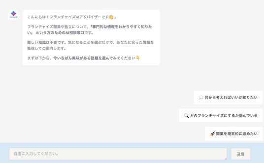 ・フランチャイズ独立開業に関するアドバイスを行う「フランチャイズAIアドバイザー」