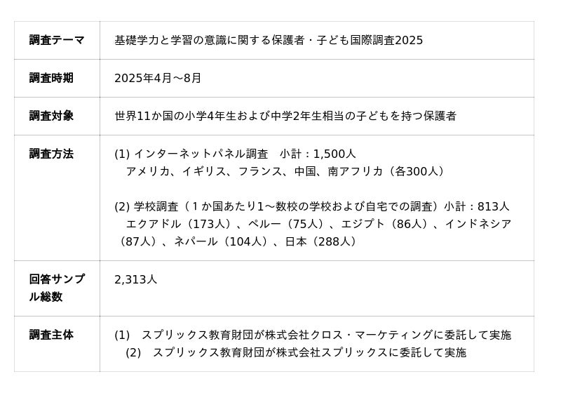 スプリックス教育財団 基礎学力と学習の意識に関する保護者・子ども国際調査2025