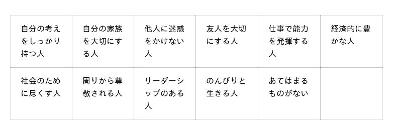 表2. 「お子様に、将来どのような人になってほしいと思いますか」という質問の11の選択肢