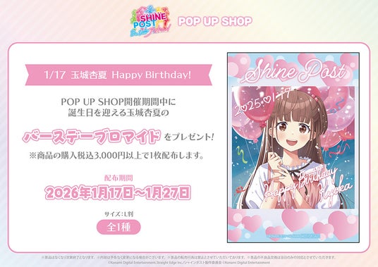 株式会社コンテンツシード(本社:東京都品川区、代表取締役:大塚 則和)は、2026年1月6日(火)より有楽町マルイ 7Fにて「シャインポスト」POP UP SHOPを開催いたします。