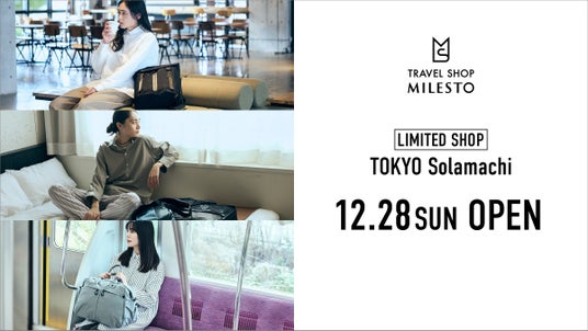 インテリア雑貨およびライフスタイル商品の企画/開発/販売を行うBRUNO株式会社(本社:東京都新宿区、代表 取締役社長:塩田 徹)は、“毎日を旅するように暮らす”大人のためのトラベルブランド「MILESTO(ミレスト)」のブランドショップ「TRAVEL SHOP MILESTO」を東京ソラマチにて12月28日(日)より、期間限定でオープンいたし ます。