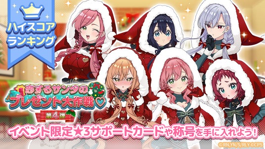 ピックアップされたキャラクターを編成することで、12月25日(木)開催の「恋するサンタのプレゼント大作戦(ハート) 第4弾」を有利に進めることができるボーナス効果が付与されます。サンタ衣装を着たキャラクターの姿をぜひお楽しみください!