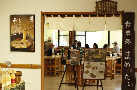 食事処「まめったい」では信州みそをベースに旬の野菜をふんだんに使い、コシのあるしっかりした平打ち麺と一緒に煮込んだ人気メニュー「おぶっこ」のが楽しめます。