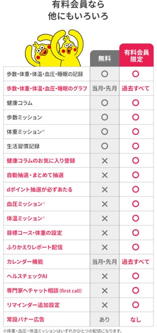 ※5「dヘルスケア」有料版は、月額利用料:440円(税込)、App Storeでのご購入・Google Playでのご購入 月額料金:480円(税込)でのご提供です。