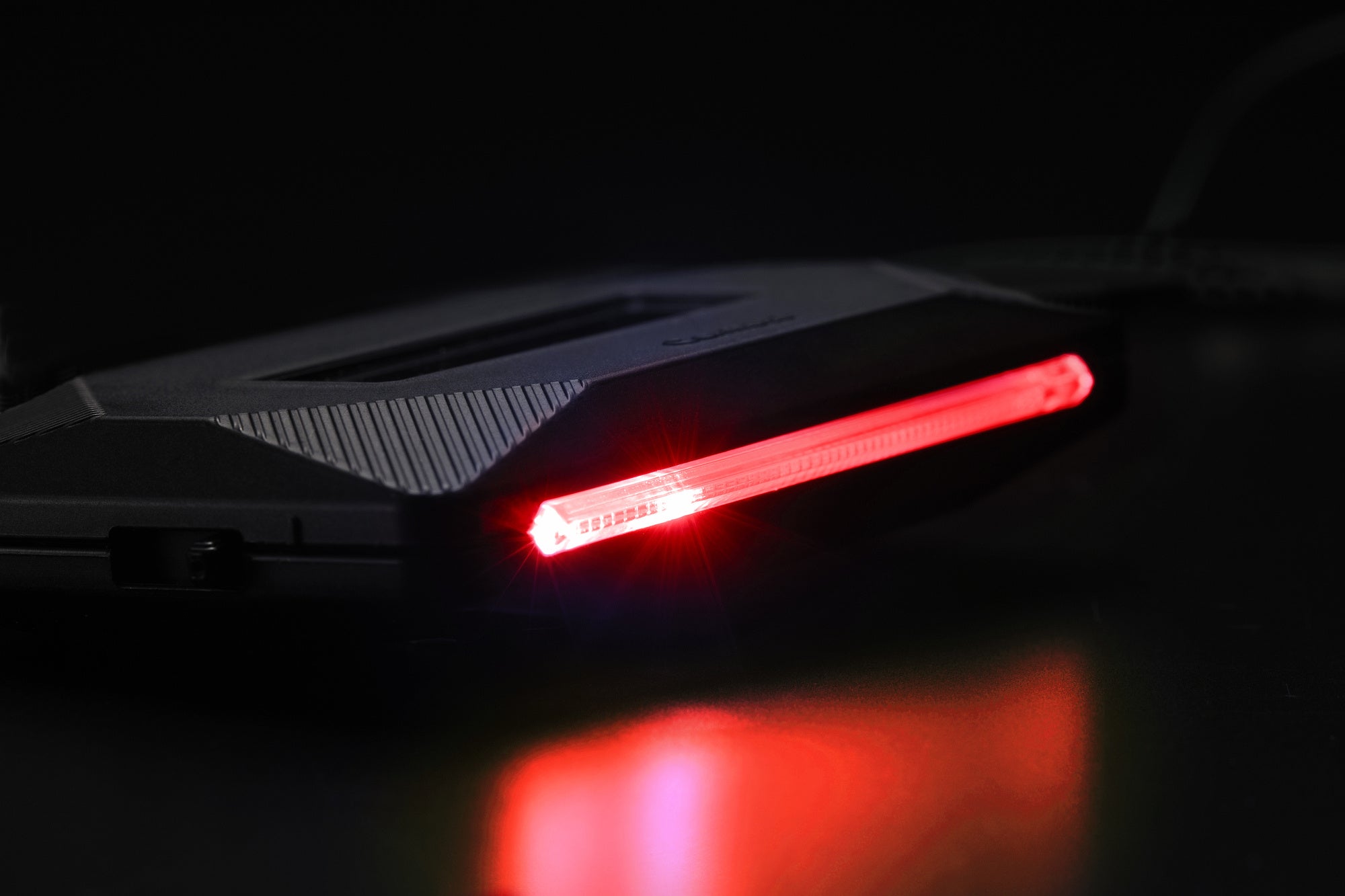 5つのLEDがシーケンシャル点滅(約5秒ごとに方向転換)し、不審者の視線を引き、心理的に威嚇します。さらに衝撃検知時には全LEDが約10秒間フラッシュし、防犯レベルを引き上げます。