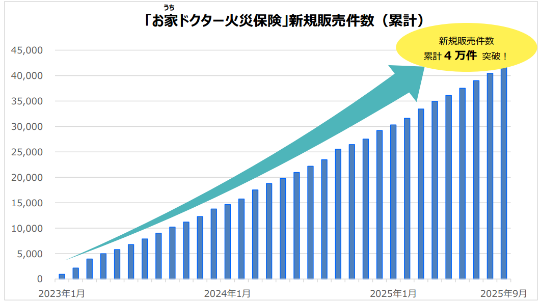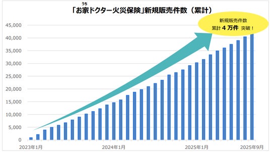 日新火災海上保険株式会社(社長:織山晋、以下「日新火災」)は、「お家ドクター火災保険」※1の販売件数が2023年1月の販売開始以降、順調に伸びており、新規販売件数が累計4万件を突破したことをお知らせします。