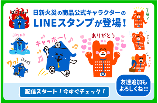 日頃のご愛顧に感謝し、日新火災の商品公式キャラクターの LINE スタンプ配信の販売もスタートしました。