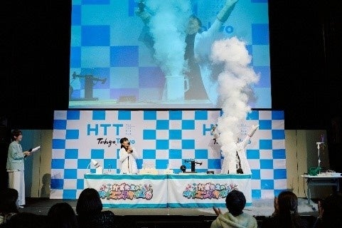 イベント当日は、HTT(電力をⒽへらす・Ⓣつくる・Ⓣためる)の取り組みをテーマに「見て・学んで・体験できる」プログラムを展開。ステージでは、HTT兄妹の堀越麗禾さんとサイエンスメッセンジャーのかず先生による「サイエンスショー」を展開し、地球温暖化によって引き起こされる大雨のしくみ、電気をつくる仕組み、再生可能エネルギーの種類などについて“楽しく学べる”実験パフォーマンスを披露しました。