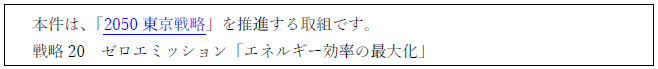 【問合せ先】 環境局気候変動対策部地域エネルギー課 電話番号:03-5388-3670