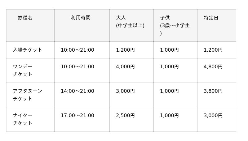 ・大人入場券(1,200円)およびシーズンパス(68,000円)