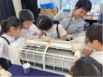 空気と熱の学習と関連させ、 エアコンが空気の温度を変える原理に触れながら、エアコン分解・組立体験