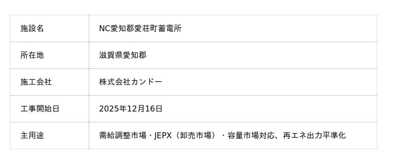 日本蓄電池株式会社(本社:東京都千代田区、代表取締役社長:漆原秀一)は、開発を進めているNC愛知郡愛荘町蓄電所(所在地:滋賀県愛知郡)において系統用蓄電池を設置したことをお知らせいたします。