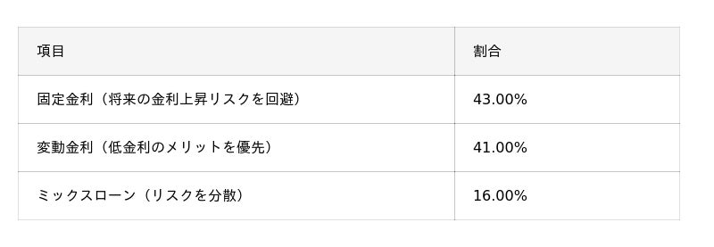 - これから借りる人へのアドバイスでは、「返済額を無理のない範囲に抑える」が44.5%でトップに。さらにお勧めの金利タイプは「固定金利」(43%)と「変動金利」(41%)で回答が割れており、昨今の金利情勢を反映して慎重な判断を促す声が目立っている。