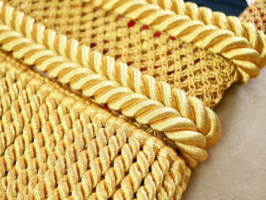 化粧まわしの部材◎綱(つな):約 1 メートル。見栄えのいい金色がよく使われる。