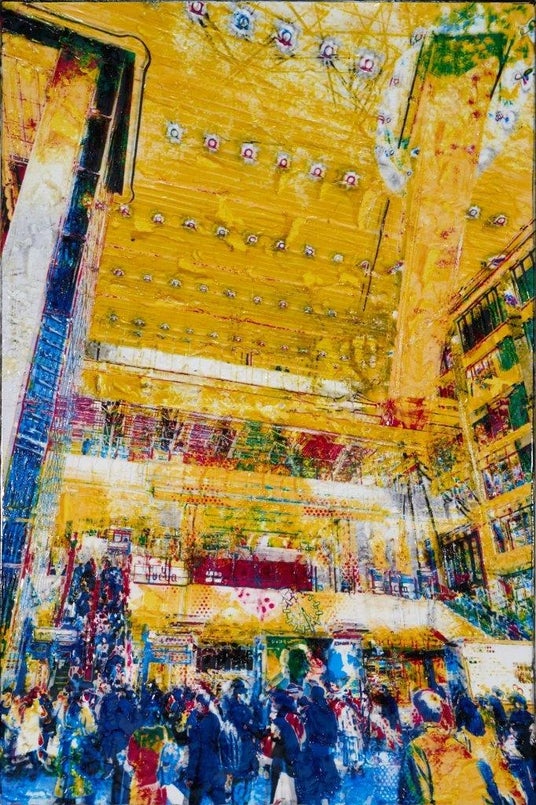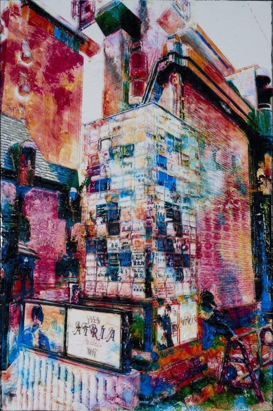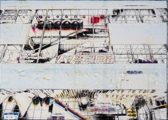 栗原氏は1993年神奈川県に生まれ、2022年東京藝術大学大学院美術教育研究室修了。同年の第70回東京藝術大学卒業・修了作品展において「早暁賞」を受賞し、次世代を担う作家として注目を集める一人で、写真やデジタル画像を繰り返しコラージュし、熱転写シートを絵具のように扱う独自の技法によって、現代都市の姿を鮮やかに描き出しています。