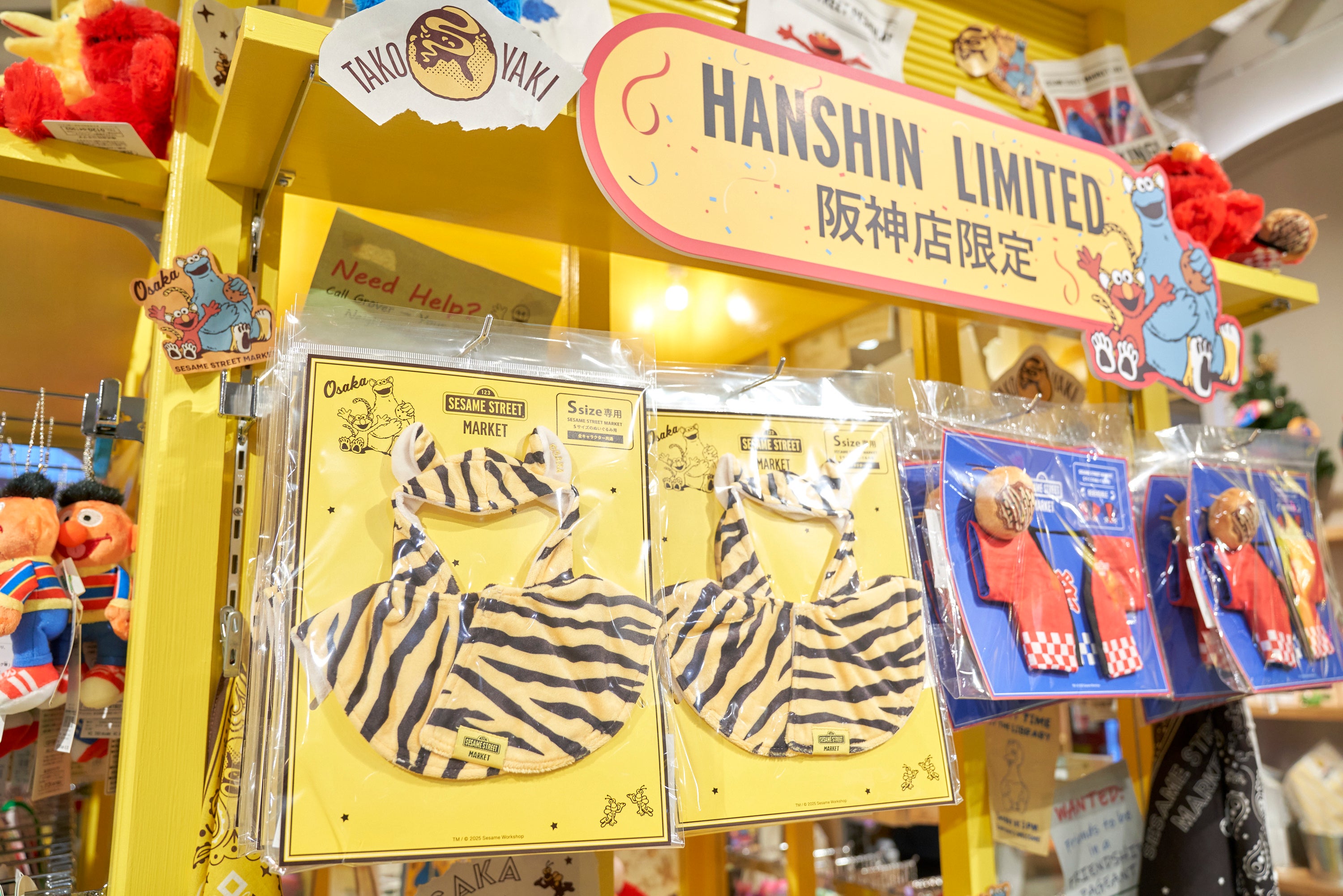 関西ならではのトラやたこ焼きなどのデザインモチーフや、黄色のキーカラーを取り入れたぬいぐるみ用コスチュームやステッカーなど、特に好評を博しているのが阪神店限定アイテム。