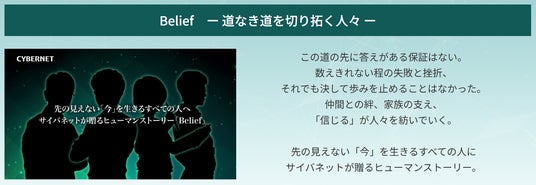 サイバネットシステム株式会社(本社:東京都、代表取締役 社長執行役員:白石 善治、以下「サイバネット」)は、サイバネットが制作しているWeb小説シリーズ「Belief」の最新作、「諦めないかぎり、可能性は常にある」前編・後編を公開したことをお知らせします。