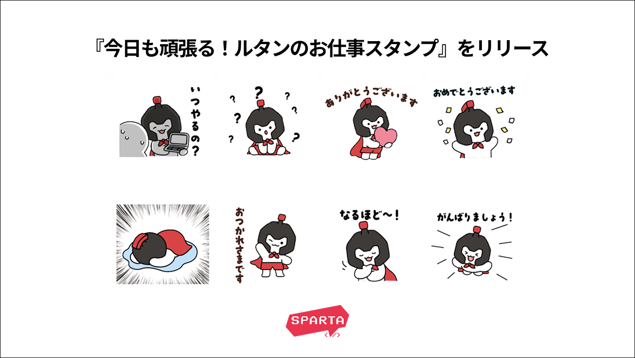 株式会社TeamSparta(住所:東京都千代田区)は、当社公式マスコットキャラクター**「ルタン」を使用したLINEスタンプ『今日も頑張る!ルタンのお仕事スタンプ』**(全8種類)をリリースしたことをお知らせいたします。