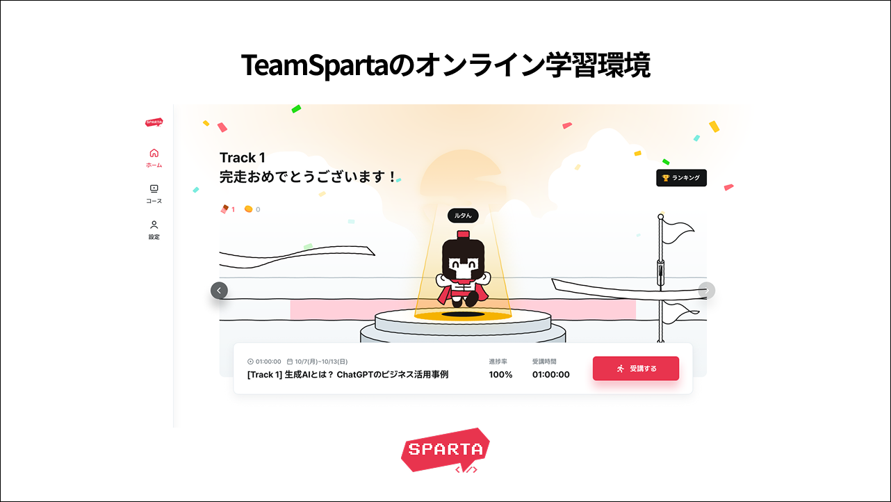 ルタンは、TeamSpartaの「誰もが大活躍できる」というミッションを体現する公式マスコットキャラクターです。