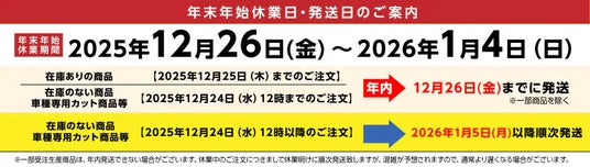 本店ECモール・本社施工ショップ共に年内最終営業日は2025年12月25日(木)となります。