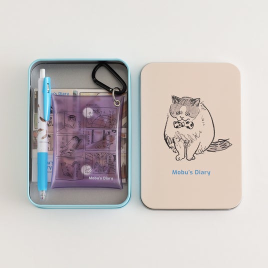 【サイズ】缶:W110×H160×D35mm ボールペン:全長141mm PVC マルチケース:約W75×H100mm ステッカー:43×70mm以内 裏紙メモ:100枚入、W100×H100×D10mm【素材】ブリキ(缶)・樹脂、ラバー(ボールペン)、 PVC、金属(PVCマルチケース)、紙(ステッカー、裏紙メモ)【生産国】缶:中国 ボールペン、ステッカー、メモ、PVCマルチポーチ:日本