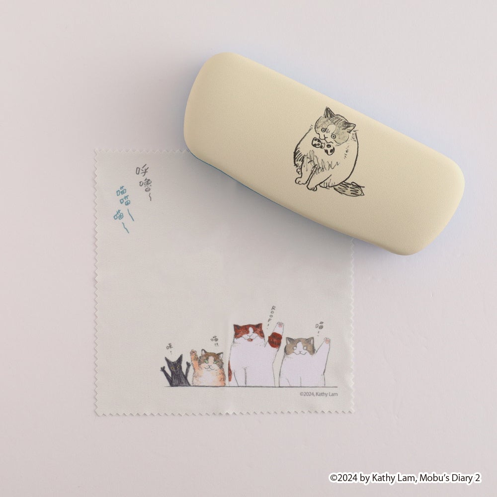 モブのかわいいイラストがデザインされたメガネケースとメガネクロスがセットになっています。